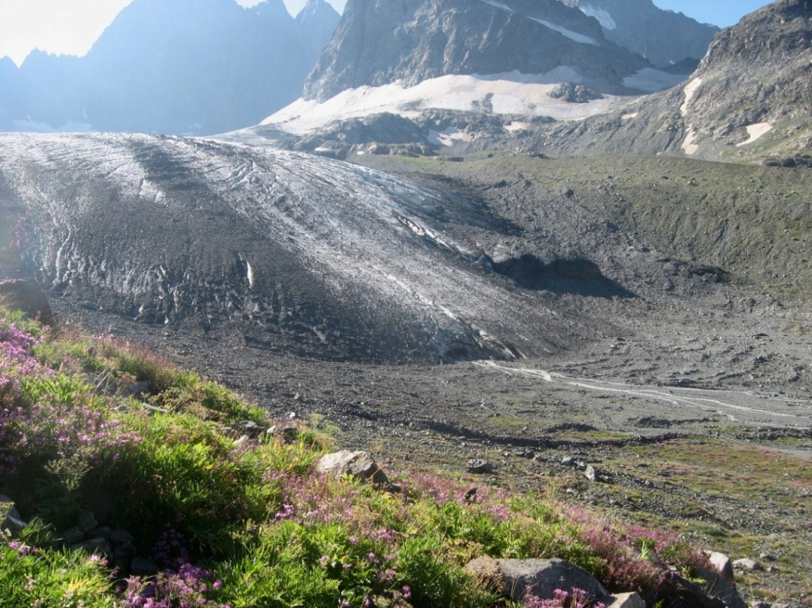 Западный склон Оборонного хребта с цветущей растительностью в непосредственной близости от Марухского ледника. [late summer — early autumn]