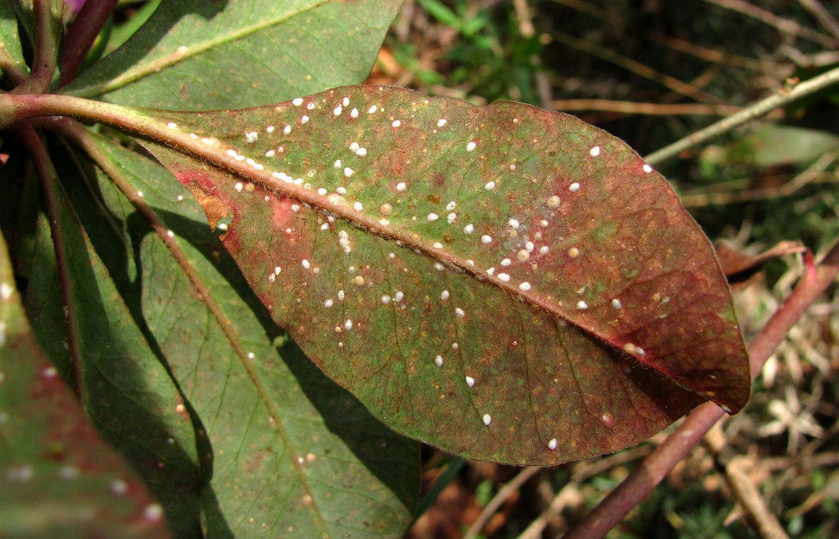 Лист с щитовками (вид снизу). Краснодарский край, Сочи, окр. Мацесты, лес. 18.02.2015.
