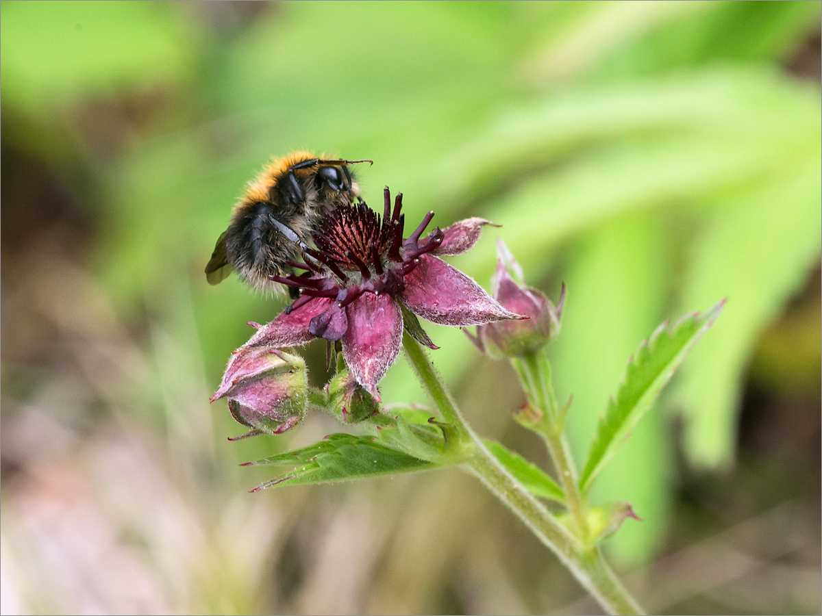 Соцветие с цветком, бутонами и кормящимся шмелём. Мурманская обл., Кандалакшский р-н, Княжегубское вдхр., каменистый берег оз. Лопское. 07.07.2023.