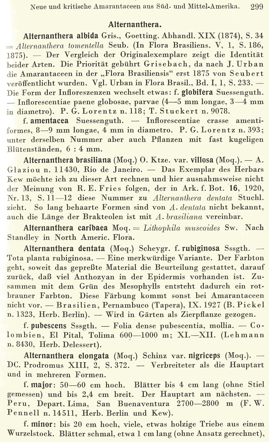 | Andriy Kovalchuk | Протолог Alternanthera elongata f. major Suess. и Alternanthera elongata f. minor Suess. (Repertorium Specierum Novarum Regni Vegetabilis 35: 299. 1934):