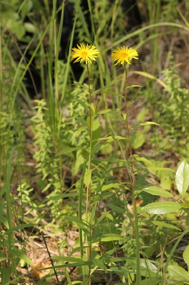 | Вячеслав Трофимов | Растение с темноватым стеблем высотой 40 см. По всему стеблю ланцетные очередные листья, на вершине корзинка с желтым цветком диаметром около 30 мм. Определил эти растения как девясил иволистный, но есть сомнения. |
