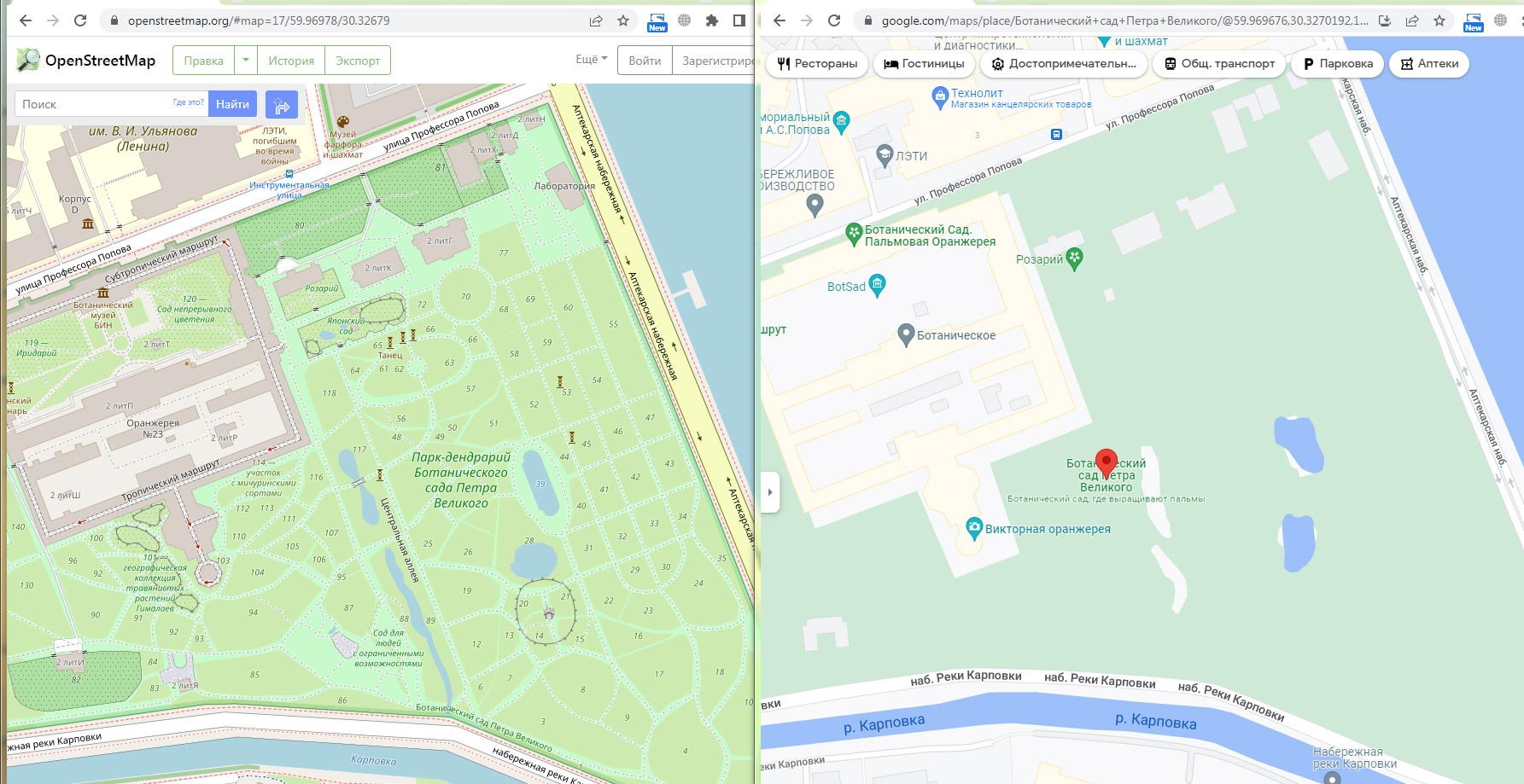 | Vladimir Kolbintsev | Любое полноразмерное изображение с координатами или привязкой к географической точке на картах Google и Яндекса имеет метку для данной точки. Open street этого не даёт. И сама эта карта весьма условно-контурная. По крайней мере, на картах Google и Яндекс в режиме космоснимка (что-то лучше на одной, что-то - на другой) видны даже отдельные конкретные известные авторам снимков кусты и деревья, что позволяет проставлять координаты с очень большой точностью до нескольких метров.