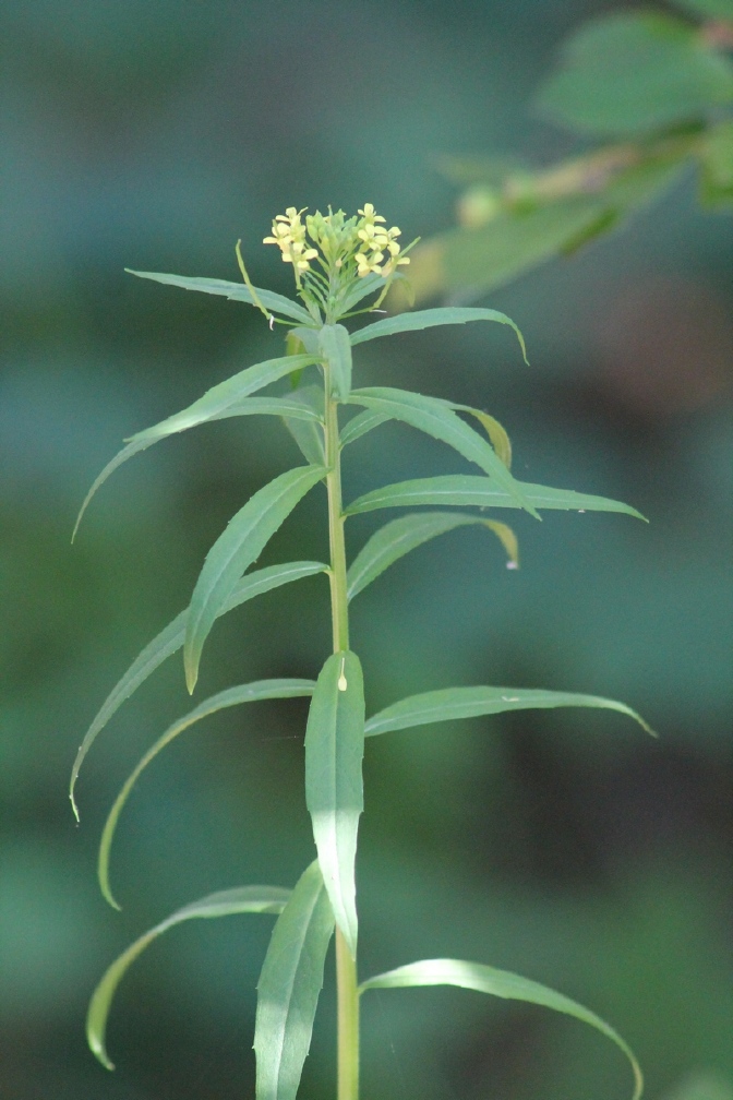 Растение высотой до 70 см. Произрастает в лесу по обочинам троп и дорог на Верхней Террасе в г. Ульяновске. Листья ланцетные, супротивные по всему стеблю, на вершине мелкие желтые цветки. Снято 9.07.2022 г.