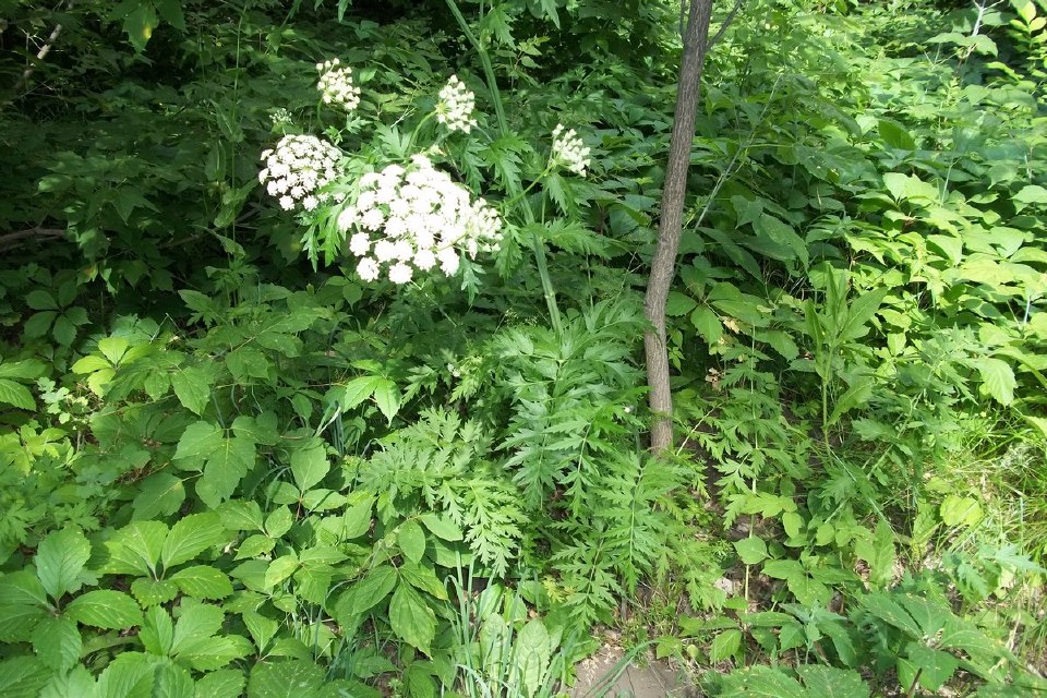 | Вячеслав Трофимов | Изобилие зонтичных на полянах в Прибрежном лесу. Все они одного вида. Предполагаю, что это бедренец. Высота растений 1,5 м., некоторые достигают до 2 м. Сложные белые зонтики на вершинах, перисто-рассеченные листья на длинных черешках. Мощный стебель в разрезе напоминает звезду. Стебель светло-зеленый, у некоторых нижняя часть стебля - светло-бурая. Кстати один такой экземпляр я обнаружил недалеко от дома в сквере на Верхней Террасе г. Ульяновска. Снято 10.07.2022 г. Прошу помочь в определении. |