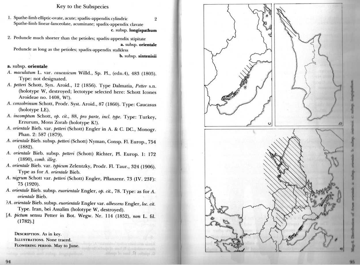 Зато в книге есть. Он пишет "Arum orientale subsp. amoenum, described from material gathered by Sintenis near Trabzon... is referable to A. maculatum"В этой статье, кстати, нет обсуждения Arum amoenum. И у монографа руки не дошли |