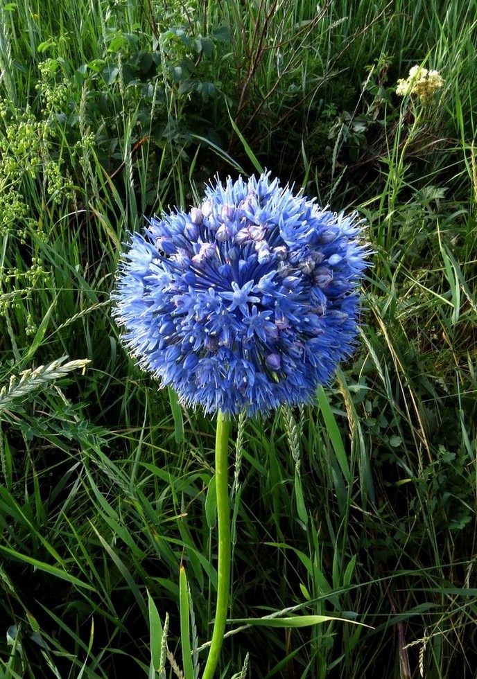 | Vladimir Epiktetov | Это Allium caeruleum. Тот еще сорняк. Дает миллион луковичек. А у нас еще преобладают формы с луковичками в соцветии. Кстати, называют его Джусай ( ошибочно, вместо A.ramosum) используют весной в приготовлении: салаты, манты, и т.д. |