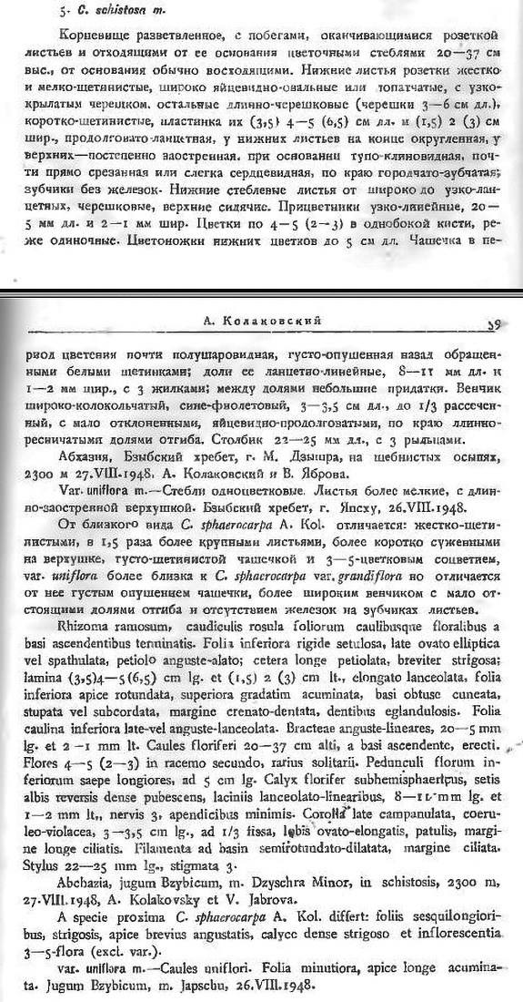 Этот вид почти не отличим от Campanula sphaerocarpa (отличается лишь широко-колокольчатым венчиком). У нас на Лагонакском нагорье встречаются C. sphaerocarpa, C. albovii и другие виды этого родства. Кто-то знает, встречается ли там же (р-н гор Фишт и Оштен) C. schistosa?