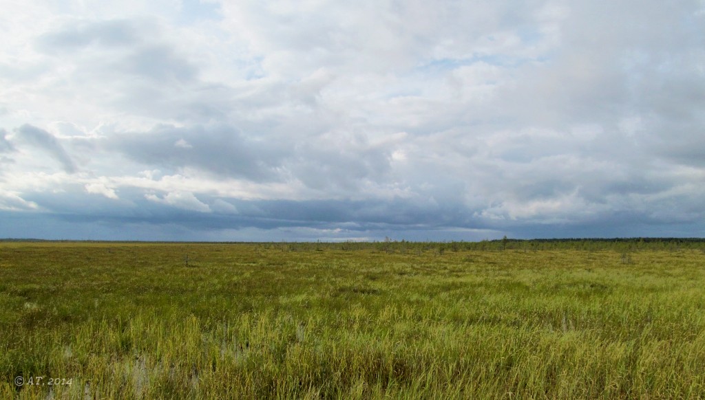 Дорога не в лучшем состоянии, часть ж.д. идет прямо через топи.