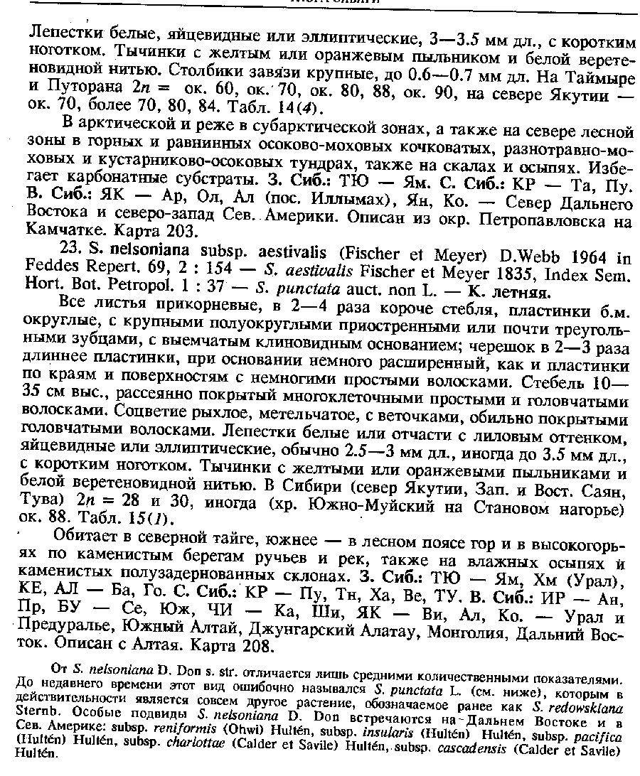 У меня в списке значится Saxifraga nelsoniana (Saxifraga aestivalis; Saxifraga punctata), т.е. виды не разделены. |