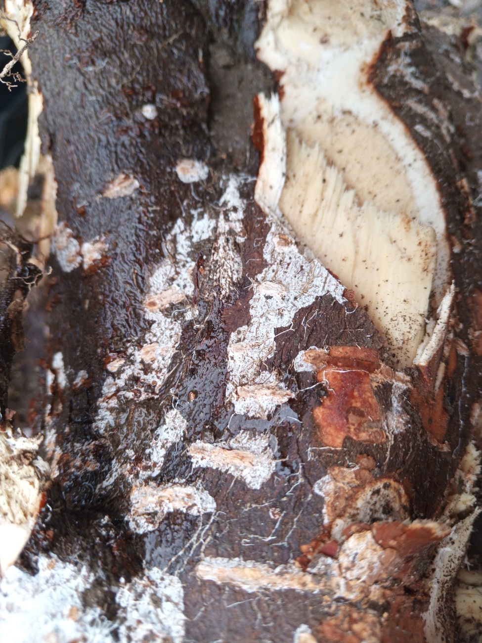 Мне кажется, это уже грибы, разлагающие древесину.