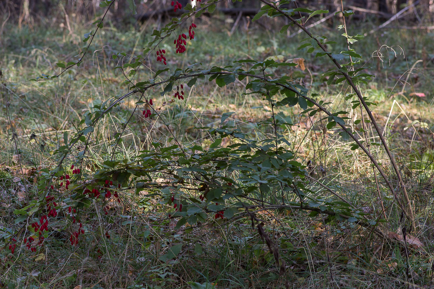 Кустарник в лесу с красными плодами
