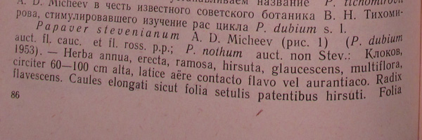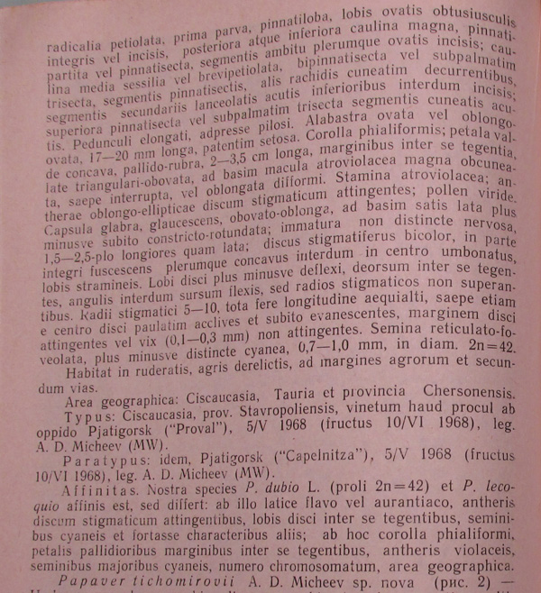 | Андрей Любченко | вроде, опубликовано здесь - А. Д. Михеев. Два новых вида Papaver L. из Центрального Предкавказья // Бюлл. Моск. о-ва испыт. прир. Отд. биол. - 1981, Т. 86, Вып. 3. - С. 86 - 90) |