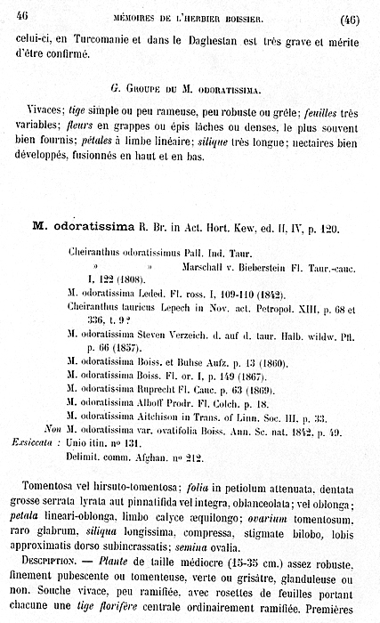 | Aleksandr Ebel | Александр Эбель wrote:В библиотеке TK, помнится, была такая не то монография, не то статья: "Conti P. Les Especies du Genre Matthiola // Memoires de l`Herbier Boissier, 1900. № 18, P. 1. 86 p." Может, там есть какая-то информация.