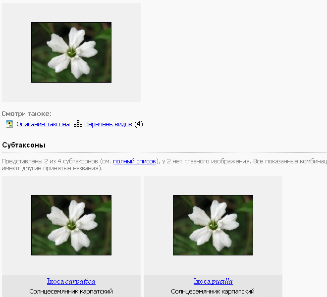 - щелчок по "превьюшке" ведёт на уровень ниже (т.е. к галерее субтаксонов таксона, представленного на картинке);