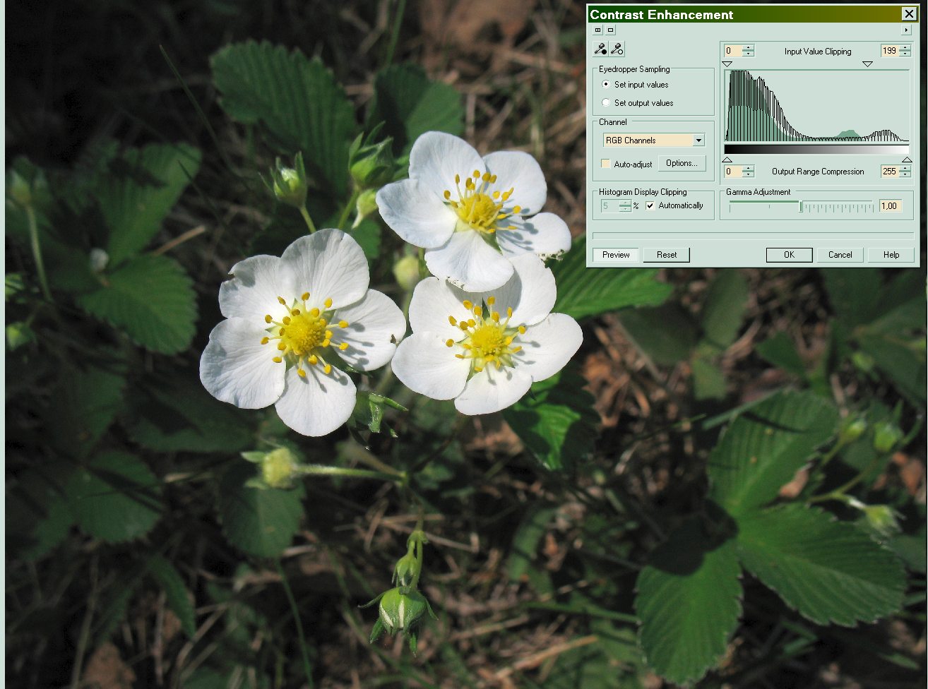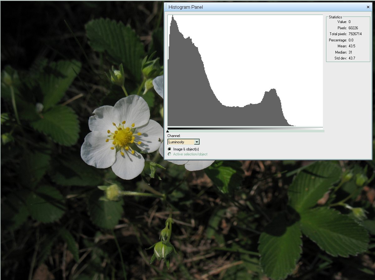 Посмотрите приложенные файлы. Первый - скриншот от Ирфана (с плагином Гистограма). Второй - из окна программы Ulead PhotoImpact 12. Кстати, очень рекомендую эту программу тем, кто не хочет заморачиваться с долгим редвактированием и получать быстро приемлемые результаты "на автомате": там всё автоматизировано для неопытных фотографов.