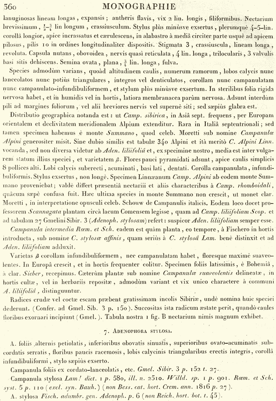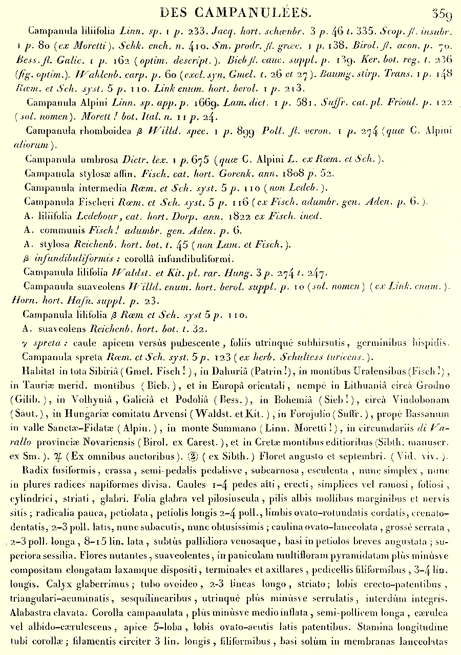 | Aleksandr Ebel | А в Tropicos есть ещё Adenophora liliifolia (L.) Besser (обнародовано в 1822 г., т.е. на 8 лет раньше Декандоля). Кто-нибудь в курсе, в чём тут подвох? |