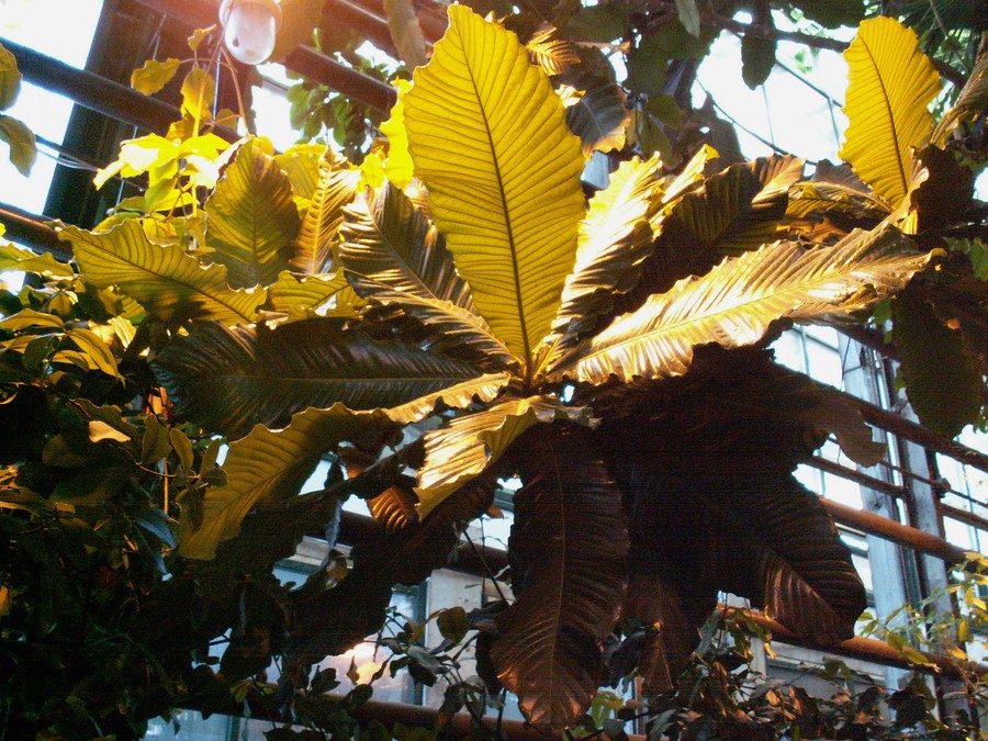 | Lena Glazunova | Посмотрите пожалуйста, может быть, кто-то узнает, что такое сняла моя коллега в теплице (вроде ГБС, но врать не буду). Растение было названо "теофрастией", но гугление как по русскому варианту, так и по 'theophrastia' никаких результатов не дало... |