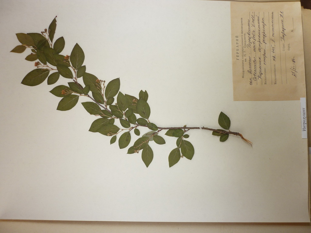 Помогите определить Cotoneaster. Определен был как C. acutifolius, но есть сомнения, так как он близок к виду C. lucidus и отличается от него "тускло-зелеными (не блестящими) сверху листьями и более густо опушенным гипантием" (ФВЕ, Т. 10).