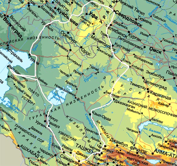 для региона "высокого уровня" - объект, маловат | | Dmitry Oreshkin | Вот лекция по рельефу Казахстана (взято отсюда). | | Ilya Smelansky | А почему в списке нет ни Устюрта, ни Мугоджар, ни Подуральского плато (зато Тургайское есть - а чем оно лучше?).