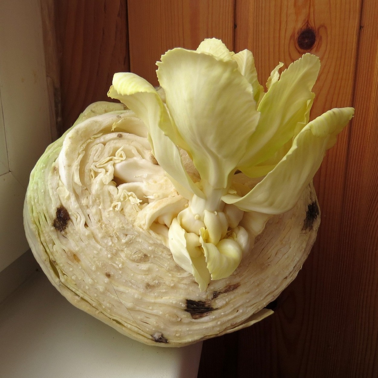 | Aleksandr Ebel | Весна в отдельно взятом холодильнике. Проросла половинка кочана капусты.