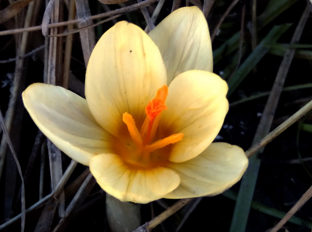 | Илья Оголь | Легкий ветерок спас от налипания. Но таки сугробы по колено к утру выросли. Правда очень скоро начали бурно таять, поскольку температура поднялась до +9, а солнце уже высоко стоит. В итоге к вечеру вчерашнего дня была каша из мокрого снега, а сегодня уже начала земля проступать. Как бы то ни было по весне удар нанесен ощутимый - много насекомых и растений утопло. Пчелы исчезли полностью, несмотря на то, что сегодня уже +15 днем было. Конечно, есть много видов, имеющих гнезда в полостях стволов деревьев и стен, им ничего не будет, но вот за гнездящихся в земле (а таких большинство) переживаю. Фиалки тоже сильно пострадали, особенно эстетически. А вот гиацинту и барвинку на первый взгляд хоть бы хны.