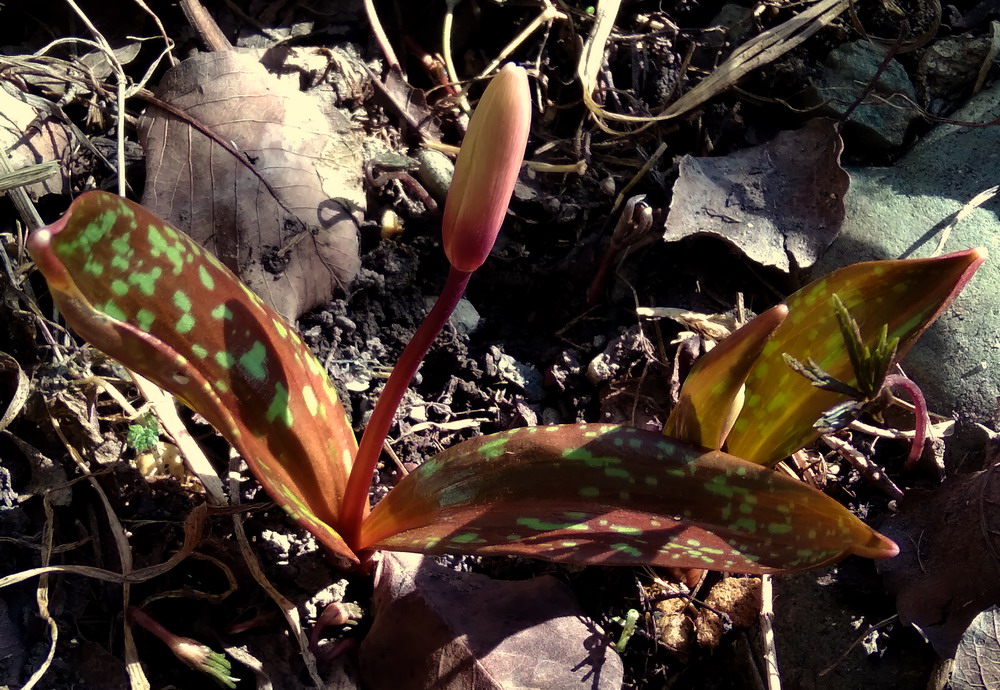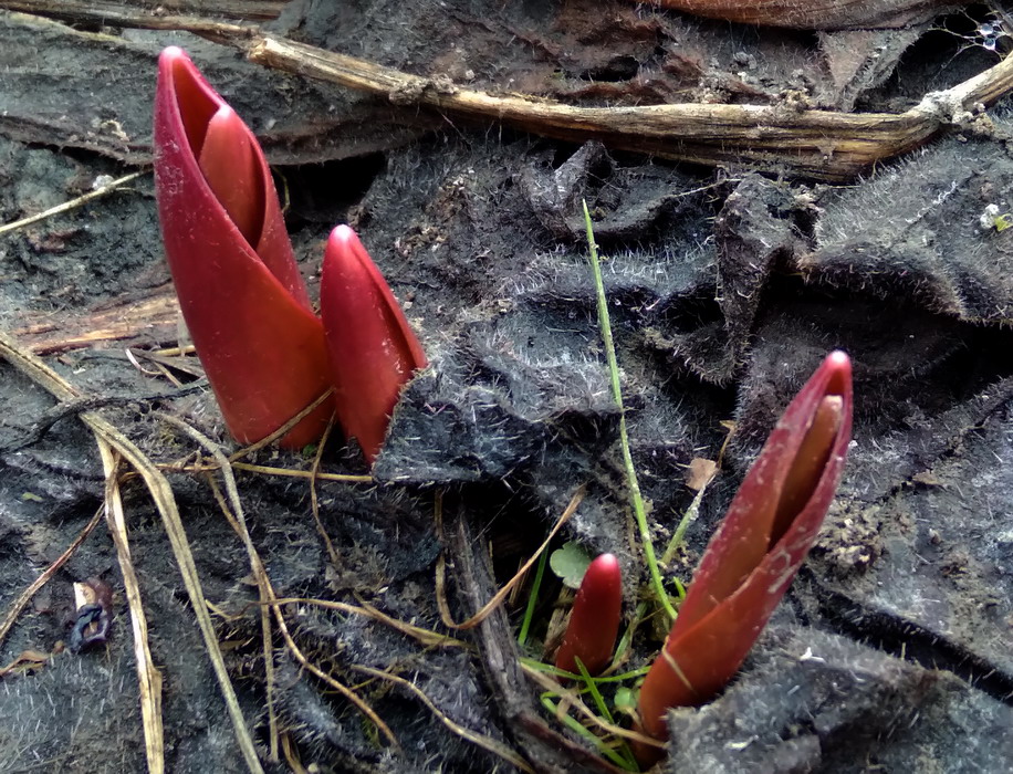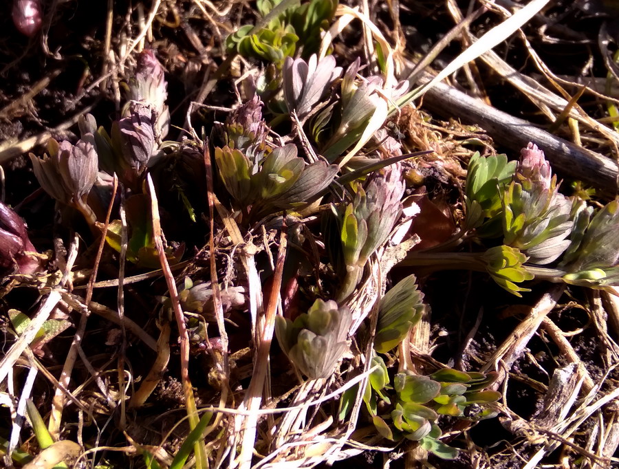 А у нас тут, если уже наметились хохлатки, кандыки и крокусы, то от галантуса остаются к этому времени только листья или вообще ничего. У нас сильно раньше вылазят галантусы, даже раньше, чем пролески.Кандык от него отстал, но немного. А вот галантусы вообще еще не появились. |