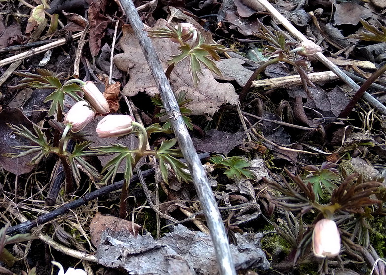 Ветреница алтайская буквально за один тёплый день 11 апреля достигла готовности расцвести и приготовила цветки до первого тёплого дня