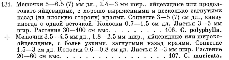 О размерах, - в принципе, соплодие по размеру сходно с соплодием шкуринских Carex vulpina, только - мешочков меньше и стебель - не крылатый, а тупо-трёхгранный |
