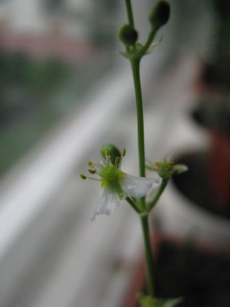 | Александр Фамилия | Семена поступили как Кальдезия белозоролистная. Посеяны весной и все лето росли в маленьких горшочках. Сейчас вдруг зацвели прямо на подоконнике. Есть подозрение, что это вовсе никакая не Кальдезия. |