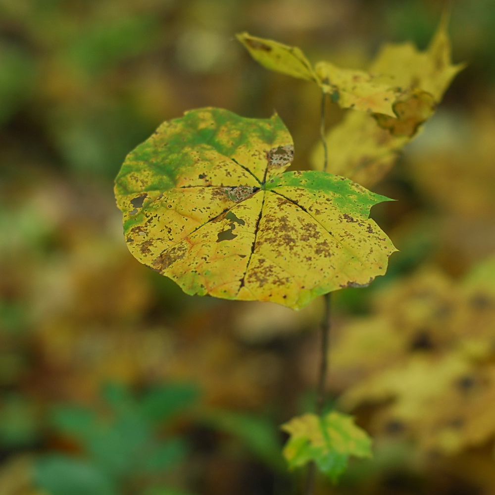 Хочется поделиться вчерашней находкой - попался лист клёна остролистного округлой формы. Как такое могло получиться? Неужели кто-то так аккуратно его обгрыз?