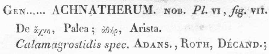 | Andriy Kovalchuk | Протолог рода Achnatherum Beauv. (Essai d'une Nouvelle Agrostographie; ou Nouveaux Genres des Graminées; Avec Figures Représentant les Caractéres de tous le Genres: 19. 1812 [Dec 1812]) (лектотип: Achnatherum calamagrostis (L.) Beauv. (= Agrostis calamagrostis L.  :