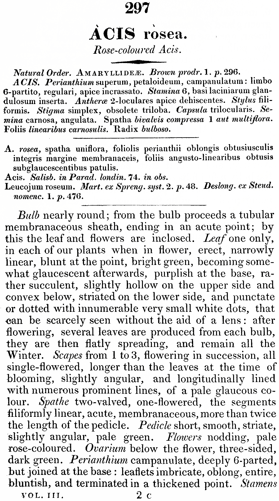 | Andriy Kovalchuk | Протолог Leucojum roseum F. Martin bis (Bibliothèque physico-économique ser. 2, 1: 347 (344-348). 1804) найти не удалось  В разных источниках имеются разночтения в том, в каком именно томе данного издания было опубликовано это название - упоминается также том 3 или том 3(1,4). Но, похоже, нужный том пока не отсканирован. |