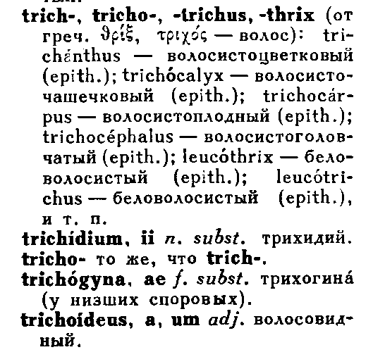 однако, поскольку волоски - короткие, то перевод - tricha = ресничка, более точный (ИМХО) |