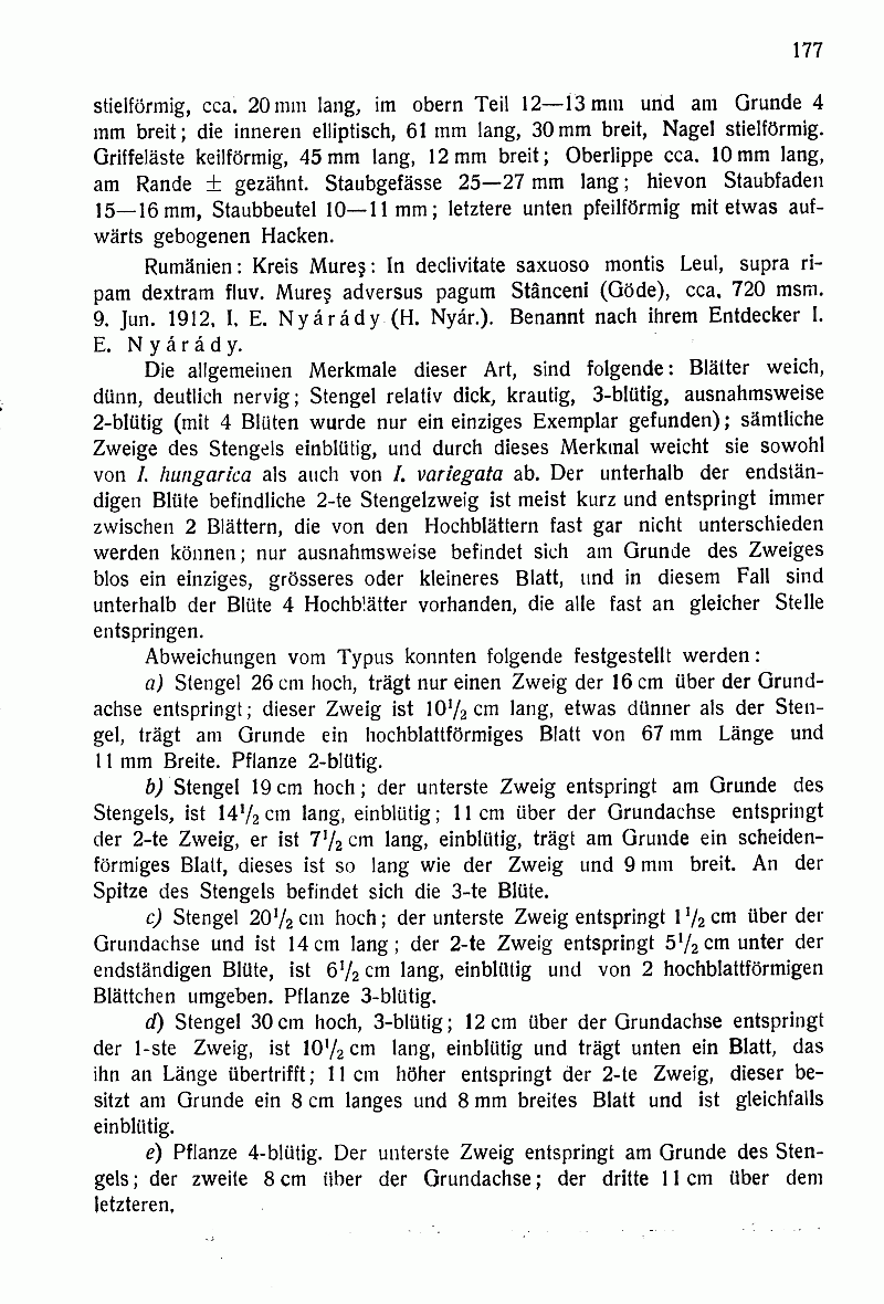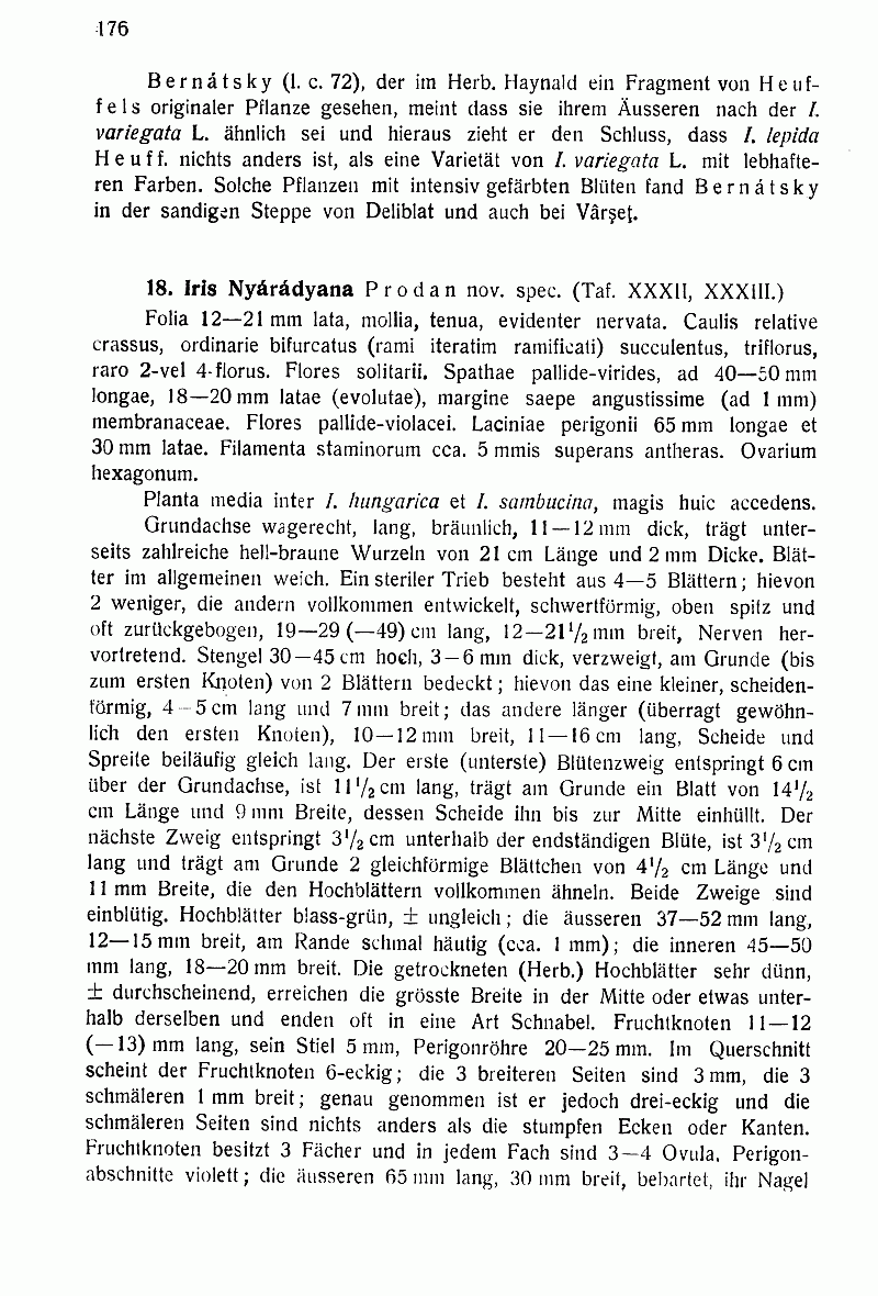 Точные описания нельзя переоценивать, они часто отражают индивидуальные качества одного измнерянного растения, но такую характеристику как “Planta media inter I. hungarica et I. sambucina magis huic accedens” нельзя не заметить. Вероятно та привела меня к эвентуальному имени I. nyaradyana, но вопрос опять в том, что понимал Продан под названием I. sambucina. Интересно то, что в разных странах обозначаются этим именем разные растения, но с другой стороны можно предполагать, что Продан держался средне-европейского определения (снимок есть на Плантарии).