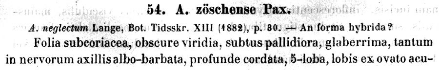 | Andriy Kovalchuk | Протолог Acer zoeschense Pax (Botanische Jahrbücher für Systematik, Pflanzengeschichte und Pflanzengeographie 7(3): 233(-234). 1886 [23 Mar 1886]):