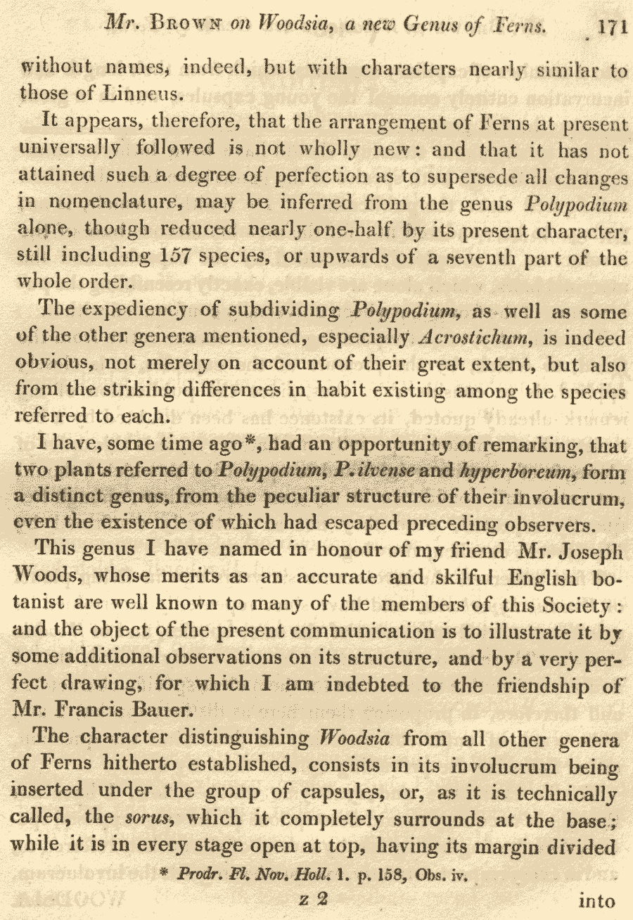 | Andriy Kovalchuk | "Полноценное" описание рода Woodsia, опубликованное Робертом Брауном несколько годами позже (Transactions of the Linnean Society of London 11: 170-174. 1815):