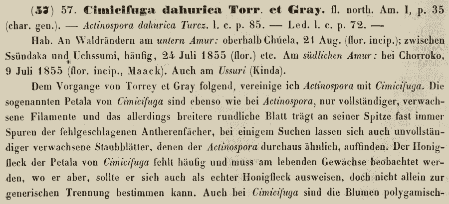 | Andriy Kovalchuk | Обнародование комбинации Cimicifuga dahurica (Turcz. ex Fisch. & C.A. Mey.) Maxim. (Mémoires présentés à l'Académie impériale des Sciences de St. Petersbourg par divers Savans et dans ses assemblées 9 (Primitiae Florae Amurensis): 28(-29). 1859):