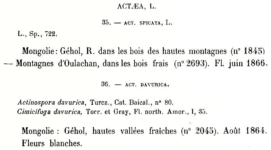 | Andriy Kovalchuk | Обнародование комбинации Actaea dahurica (Turcz. ex Fisch. & C.A. Mey.) Franch. (Nouvelles archives du Muséum d'histoire naturelle ser. 2, t. 5 (Plantae Davidianae ex Sinarum Imperio): 175. 1883):
