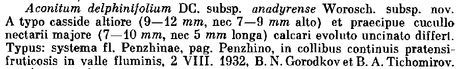 | Andriy Kovalchuk | Протолог Aconitum delphinifolium ssp. anadyrense Worosch. (Бюллетень Главного ботанического сада 64: 34. 1967):