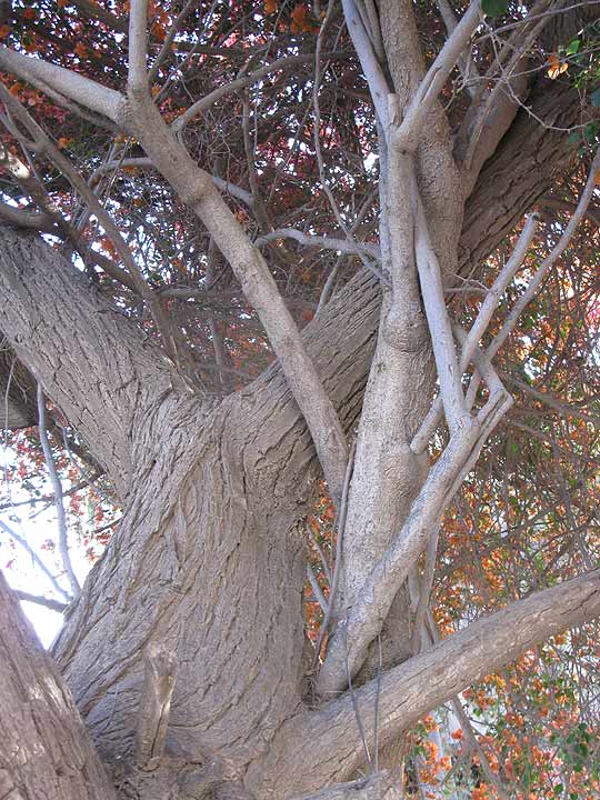 | Марина Рыбка | Старая огромная Бугенвиллея. У неё - ствол? Она залезла на Типуану. Не обвила, не обмотала, а просто так, опирается.