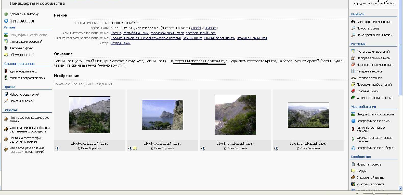 Вернее, станет хорошо, когда изменение коснётся и описания.  Если кликнуть по Географической точке "Новый Свет", то открывается страница, на которой 4 фотографии и в описании - ещё Украина.