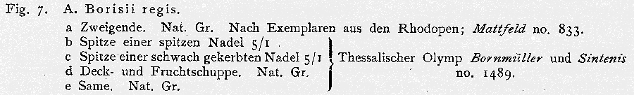 | Andriy Kovalchuk | Иллюстрации из работы Й. Маттфельда "Die in Europa und dem Mittelmeergebiet wildwachsenden Tannen" (Mitteilungen der Deutschen Dendrologischen Gesellschaft 35: 1-37. 1925), о которых упоминается в сноске на с. 235 протолога.