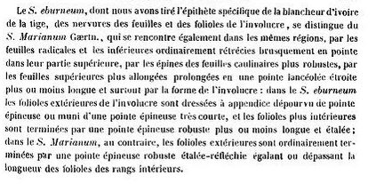 | Dmitriy Bochkov | Из протолога: "Le S. eburneum, dont nous avons tiré l'épithète spécifique de la blancheur d'ivoire de la tige, des nervures des feuilles et des folioles de l'involucre, ..."