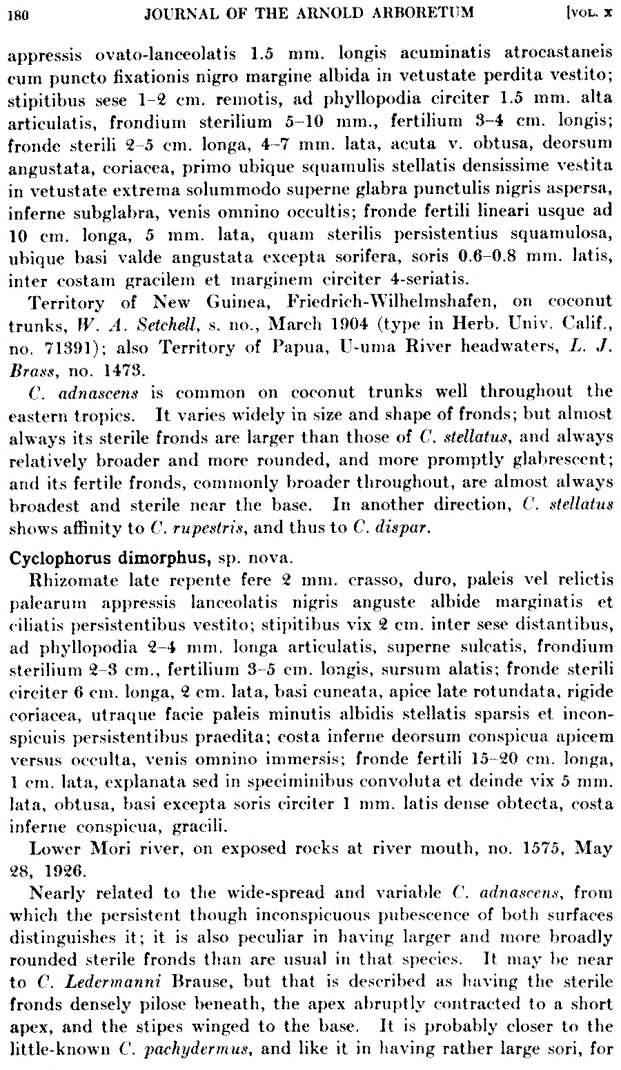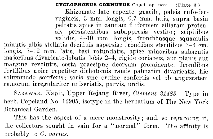 Протолог Cyclophorus stellatus Copel. и Cyclophorus dimorphus Copel. (Journal of the Arnold Arboretum 10(3): 179–181. 1929):
