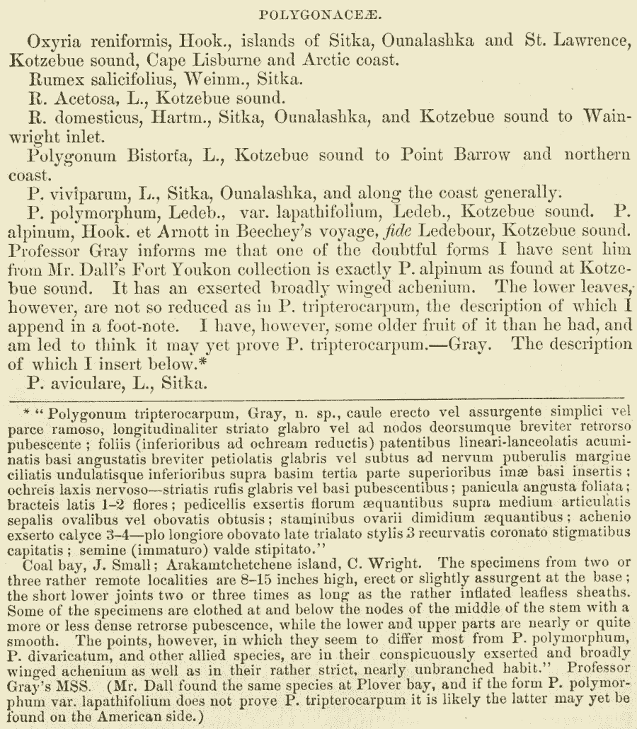 | Andriy Kovalchuk | В записи авторства синонима Polygonum tripterocarpum A. Gray ex предлог 'ex', по-видимому, не нужен - по крайней мере, у Черепанова его нет. |