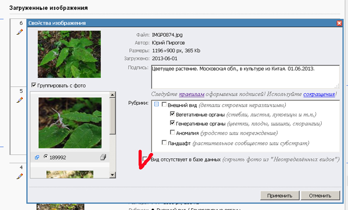 Надо открывать обсуждение и указывать вид, если такого ещё нет в базе  |