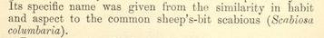 | Natalia Gamova | Вид был назван по сходству со Scabiosa columbaria (см. http://www.biodiversitylibrary.org/page/437097#page/191/mode/1up )