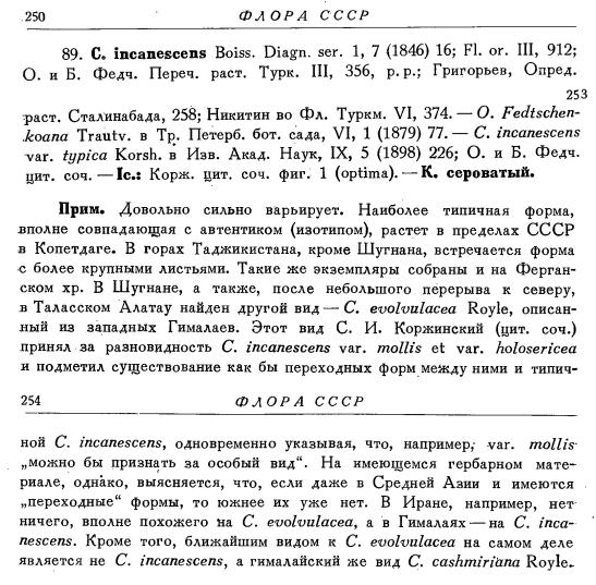 А ещё во флоре СССР они синонимы, а вот в ОРСА даётся основным C. fedtschenkoana и в синонимах - C. incanescens auct., non Boiss.