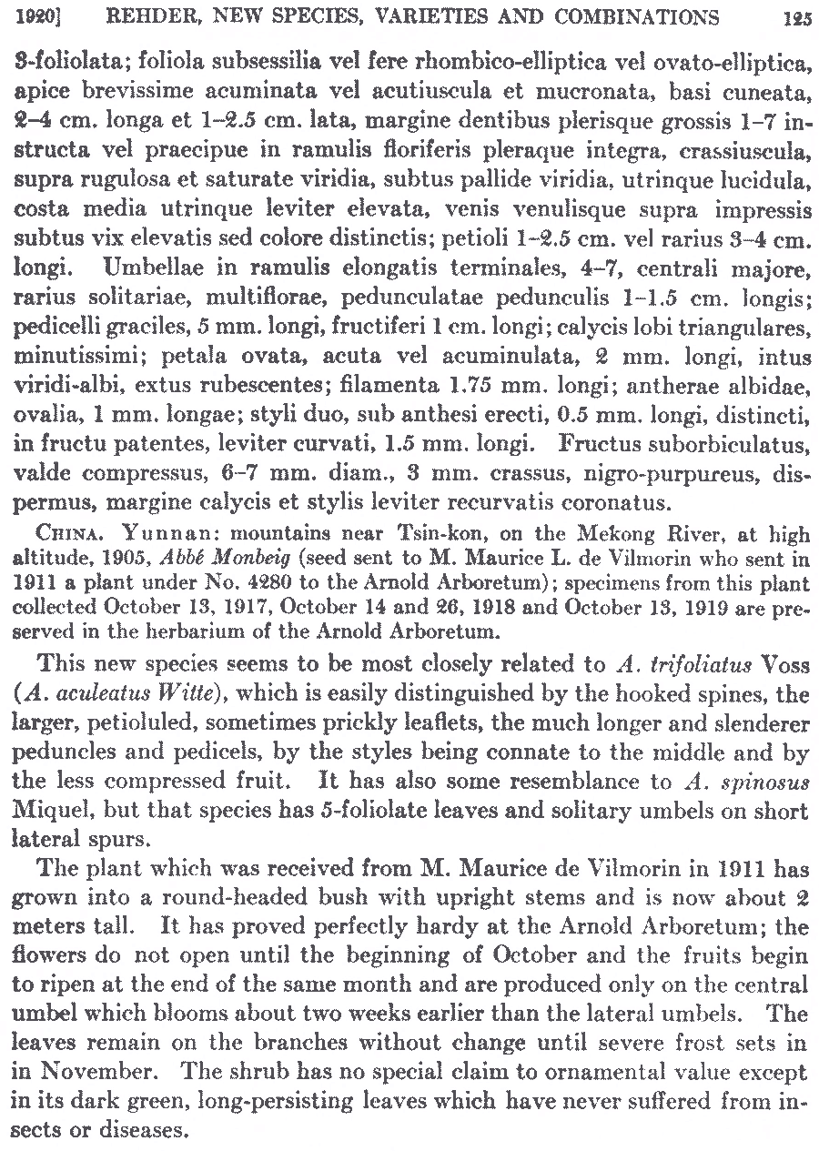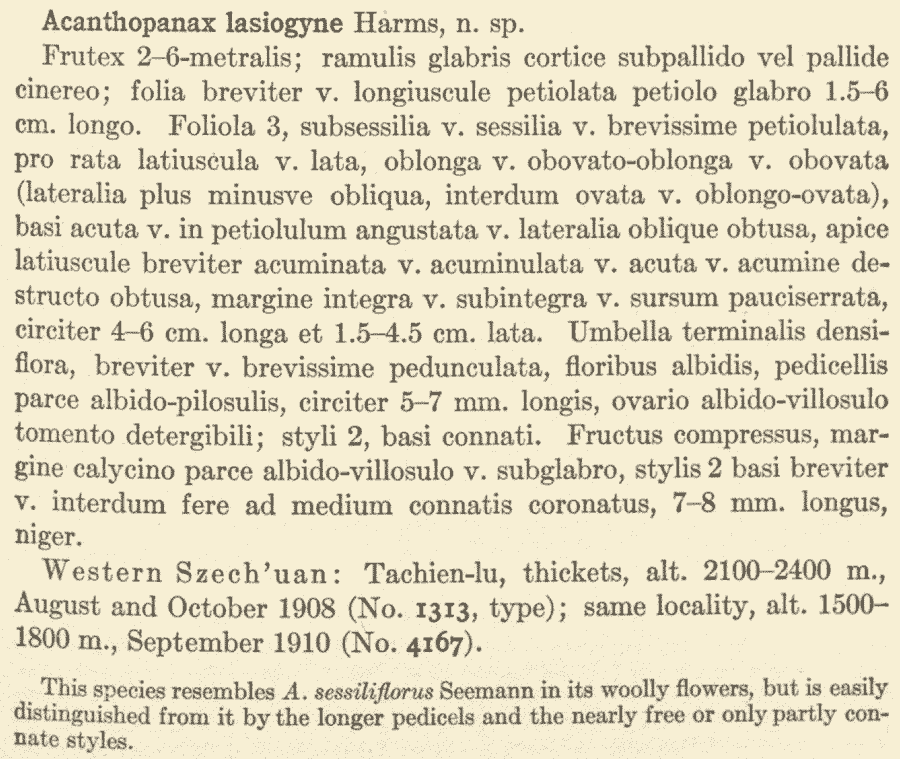 Протолог Acanthopanax ternatus Rehder (Journal of the Arnold Arboretum 2(2): 124–125. 1920):