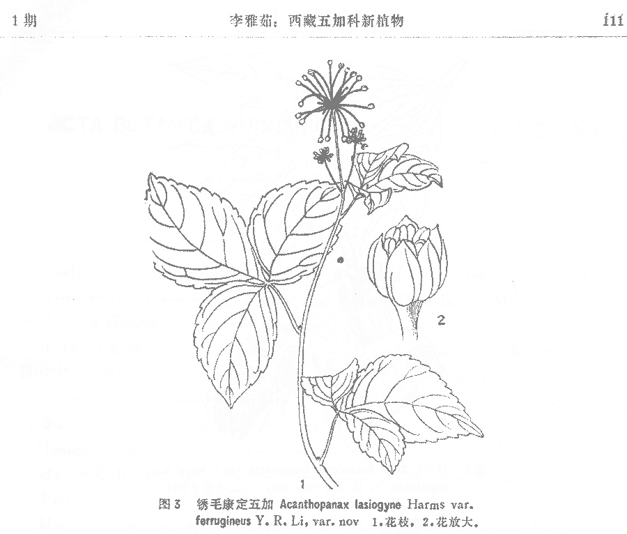 | Andriy Kovalchuk | Протолог Acanthopanax lasiogyne var. ferrugineus Y.R. Li (Acta Botanica Yunnanica 2(1): 107–108, pl. 3. 1980):